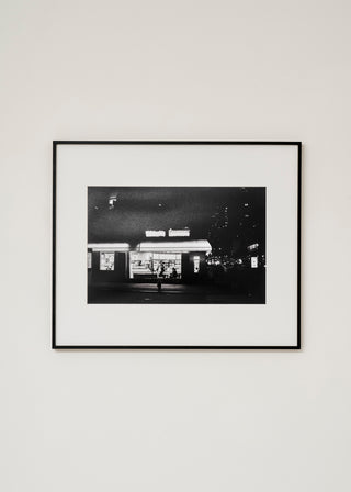 The black-and-white photographs, rich with grain, transform the cityscape into a stage of poetic intensity… Iconic landmarks like Radio City Music Hall, shimmer in ethereal stillness, while the restless energy of passing cars and towering buildings evoke the heartbeat of the metropolis… Each image feels like a frame from an unwritten dance, where shadows and light pirouette together in perfect harmony…