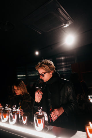 We lit the first wick of Artistic Palace and the room changed—studio wood, late-night cables, that focused heat only musicians know. Then lights down: an exclusive preview of THE MUSIC PLACE and the original track “CONTROL.” Artists, editors, stylists, and friends crossed disciplines—fashion beside film, sound beside scent—until the studio felt like a runway. It was intimate, electric, and unmistakably Lola James Harper.
